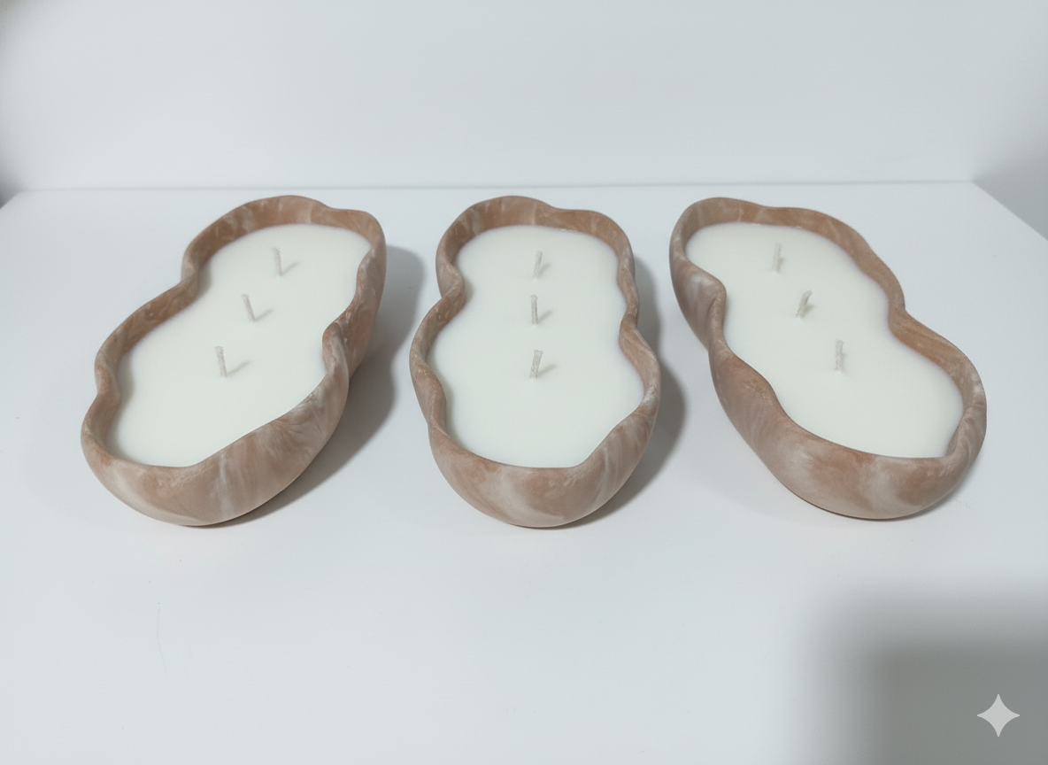 لمسة فنية يدوية: نظرًا لأن كل وعاء يُصنع يدويًا بعناية فائقة، فإن كل قطعة تحمل طابعها الفريد. قد تلاحظ اختلافات طفيفة وجميلة في التدرجات اللونية أو النمط الرخامي، وهذا ما يميز منتجاتنا المصنوعة بحب ويجعل شمعتك قطعة فنية لا تتكر