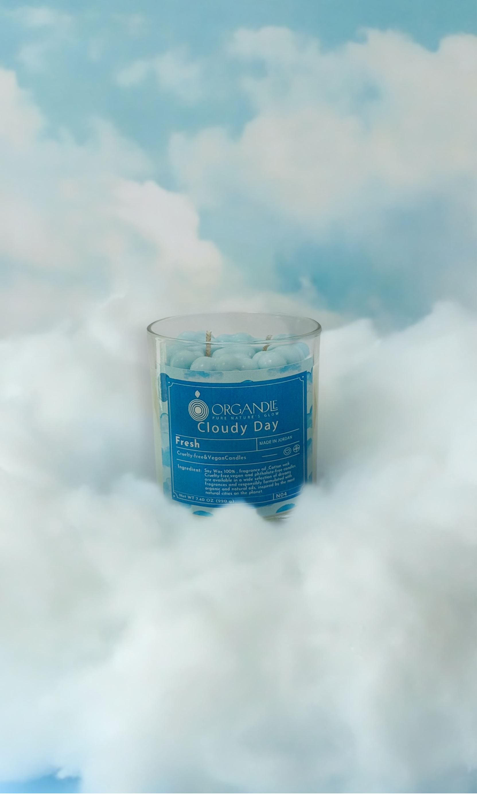 Experience a unique sensory delight with the "Cloudy Day" Fresh Scented Soy Candle by "Organdle". Crafted with love from 100% natural soy wax, this entirely vegan candle offers a healthy and safe way to illuminate your home with a refreshing and clean aroma.
