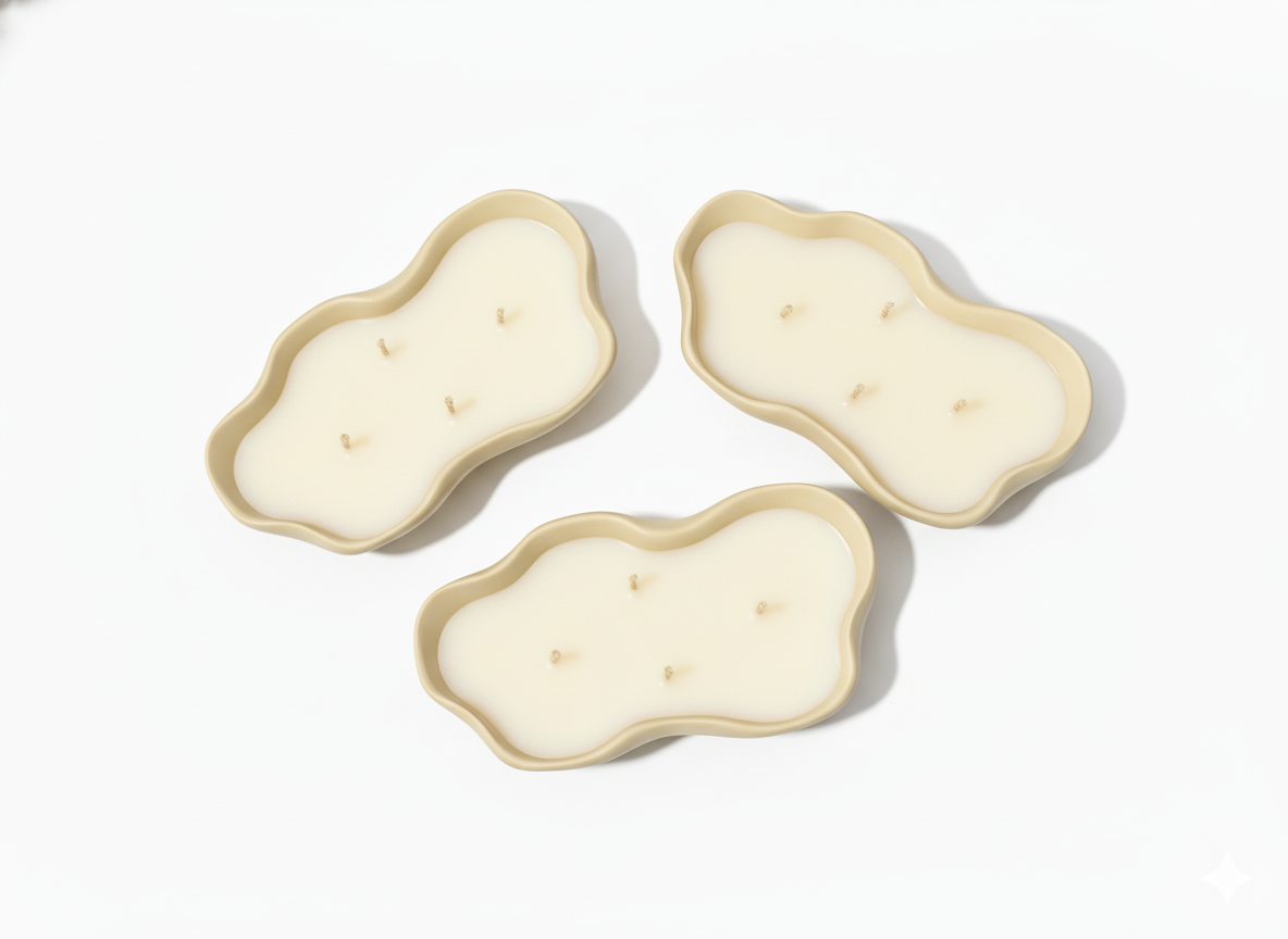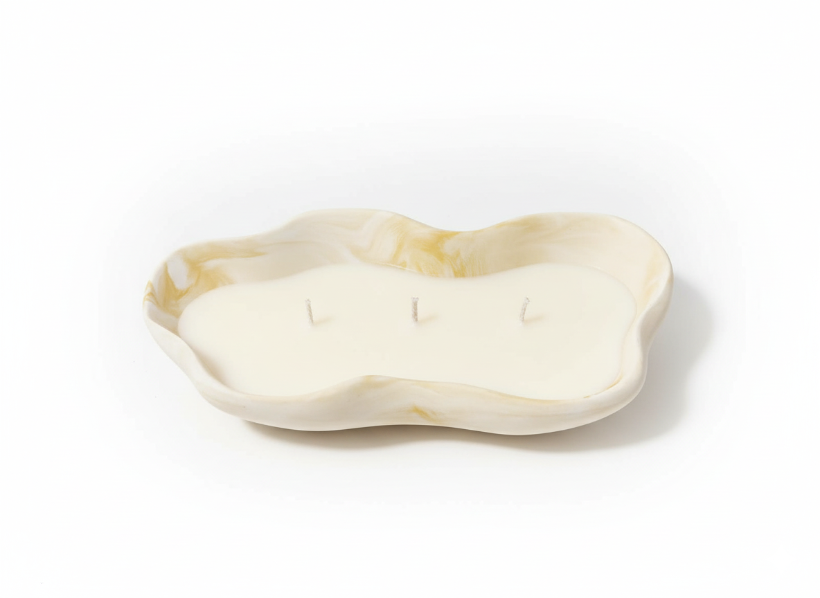 الألوان: قالب رخامي باللونين الأصفر والأبيض مع شمع بلون كريمي طبيعي.